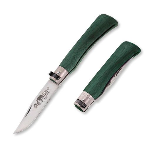 Σουγιάς Antonini Old Bear Full Color πράσινη λαβή L με δαχτυλίδι σταθεροποίησης από μπρούτζο και λαβή από καρυδιά.